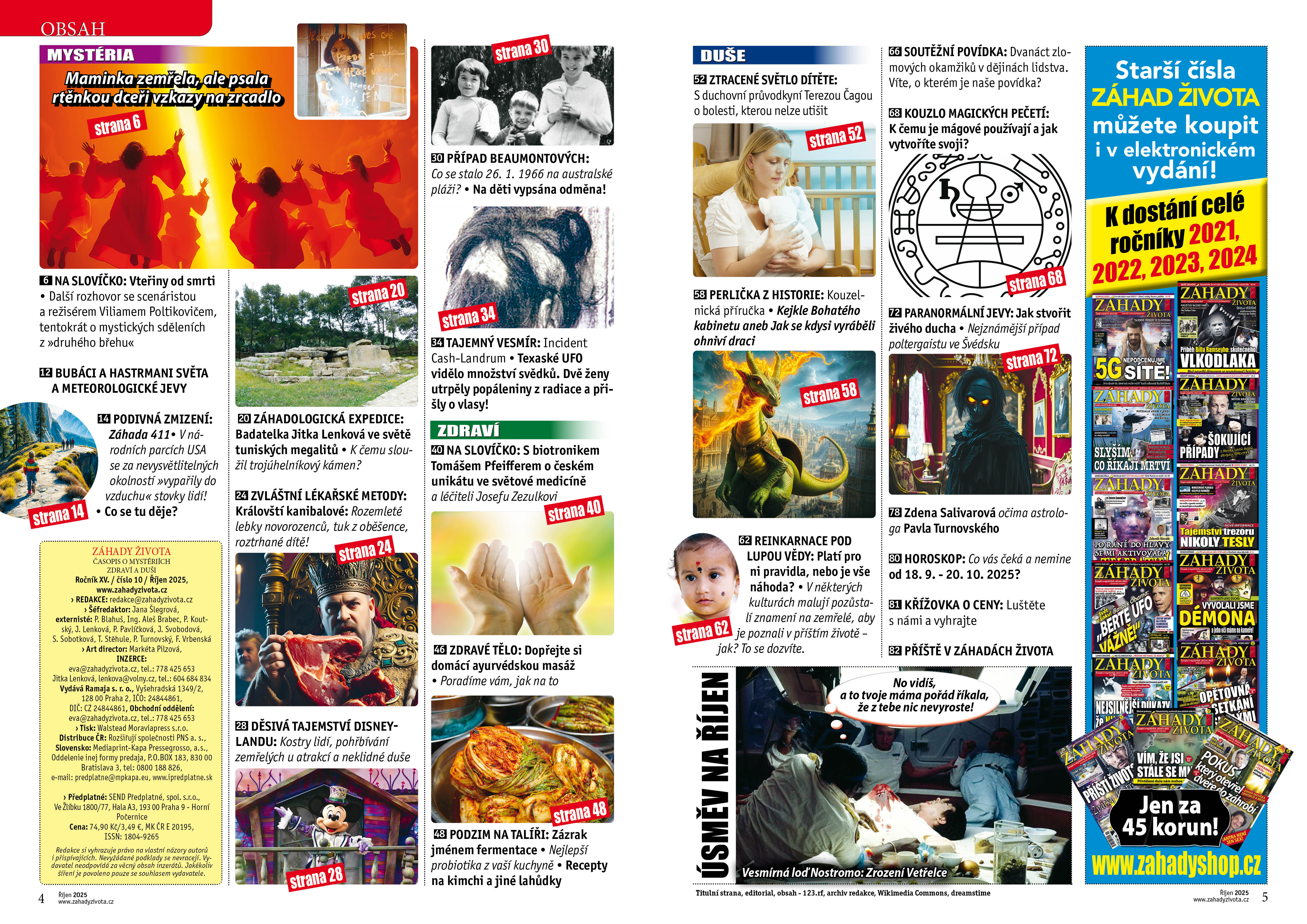 Podivná zmizení: Záhada 411- v národních parcích se za nevysvětlitelných okolností ztrácejí lidé! / Vteřiny od smrti: Další rozhovor se scenáristou a režisérem Viliamem Poltikovičem / Jak stvořit živého ducha: Nejznámější případ poltergaistu ve Švédsku / Reinkarnace pod lupou vědy: Platí pro ni pravidla, nebo je vše náhoda? / S biotronikem Tomášem Pfeifferem o českém unikátu ve světové medicíně a léčiteli Josefu Zezulkovi