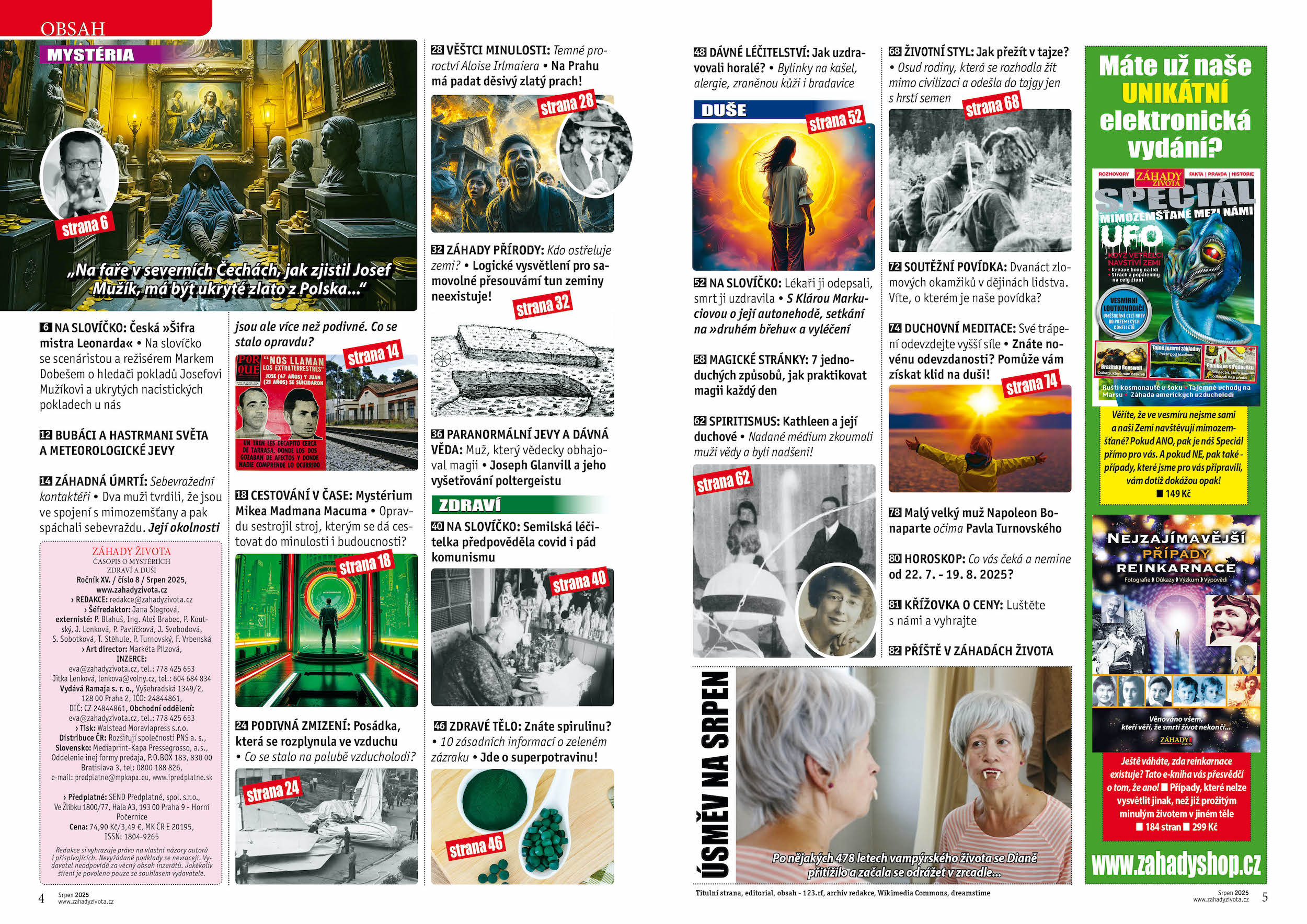 Dechberoucí zpověď: Lékaři ji odepsali, smrt uzdravila: S Klárou Markuciovou o její autonehodě, setkání na »druhém břehu« a vyléčení / Spiritismus: Kathleen a její duchové - nadané médium zkoumali muži vědy a byli nadšeni! / Cestování v čase: Mystérium Mikea Madmana Macuma - opravdu sestrojil stroj, kterým se dá cestovat do minulosti i budoucnosti? / Česká »Šifra mistra Leonarda« se scenáristou a režisérem Markem Dobešem o hledači pokladů Josefovi Mužíkovi a ukrytých nacistických pokladech u nás
